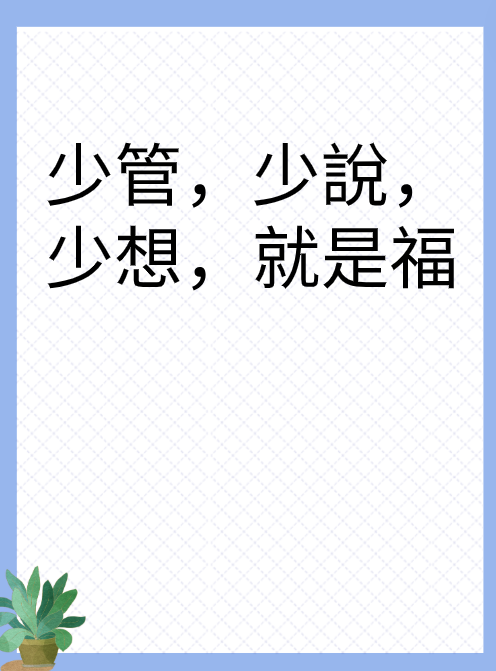 少管,少説,少想,就是福